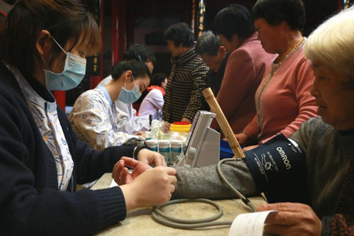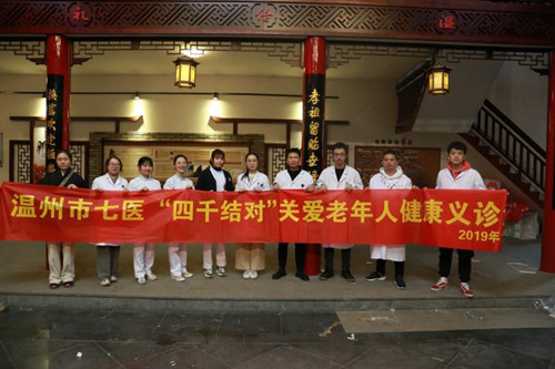 ? ?12月26日,溫州市第七人民醫(yī)院派出義診小分隊來到文成縣大峃鎮(zhèn)珊門文化禮堂,開展“四千結(jié)對”關(guān)愛老年人健康義診活動,為當?shù)厝罕娝腿ソ】岛蜏嘏?/span>