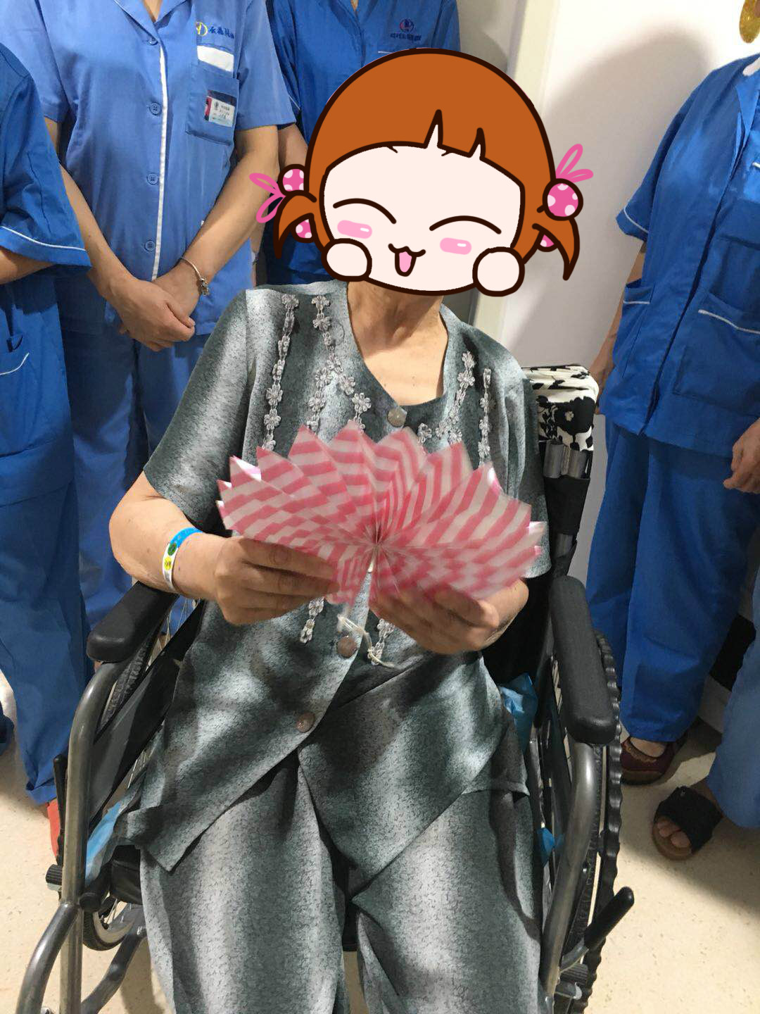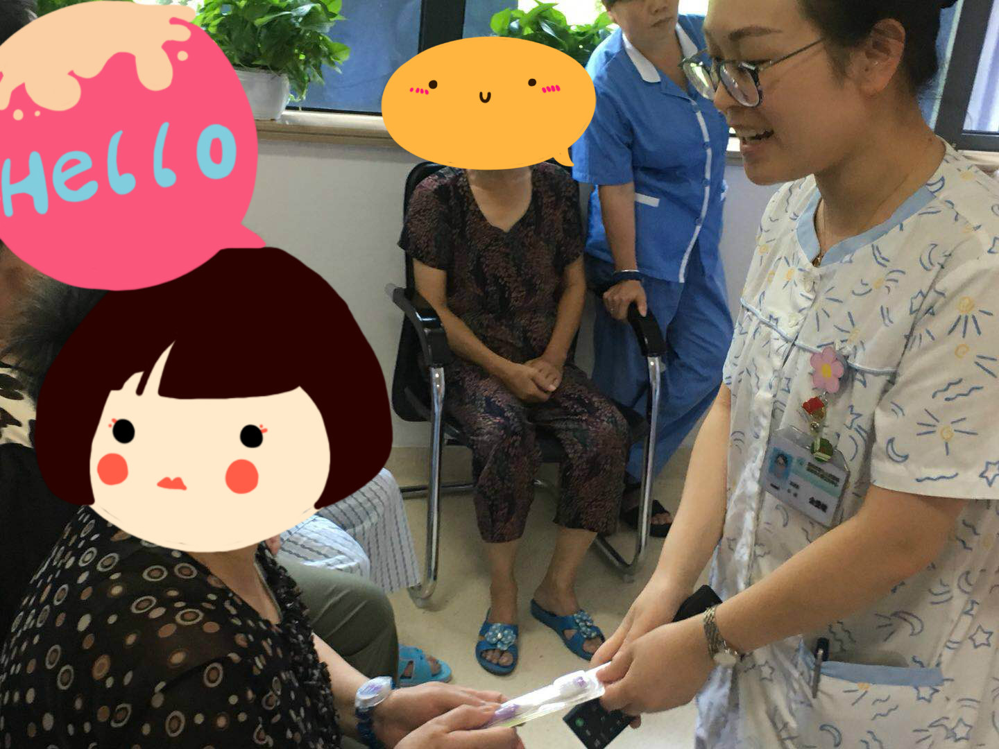 在護(hù)士的主持下,大家還一起猜燈謎,拿獎品,好生熱鬧。護(hù)士問:“又圓又扁肚里空,活動鏡子在當(dāng)中, 大人小孩都愛它,每天向它鞠個躬。(打一用具)”康復(fù)室里瞬間安靜下來在思考,突然一個阿婆說:“這是臉盆吧?!闭媸菣C(jī)智到不行,我們立即為她送上我們的準(zhǔn)備的獎品。還有一個燈謎:“兄弟幾個人,各進(jìn)一道門, 那個進(jìn)錯了,看了笑死人。(打一物)”,病人又快速的喊出“紐扣”。不得不佩服他們,機(jī)智如我們科這些可愛的老人家。