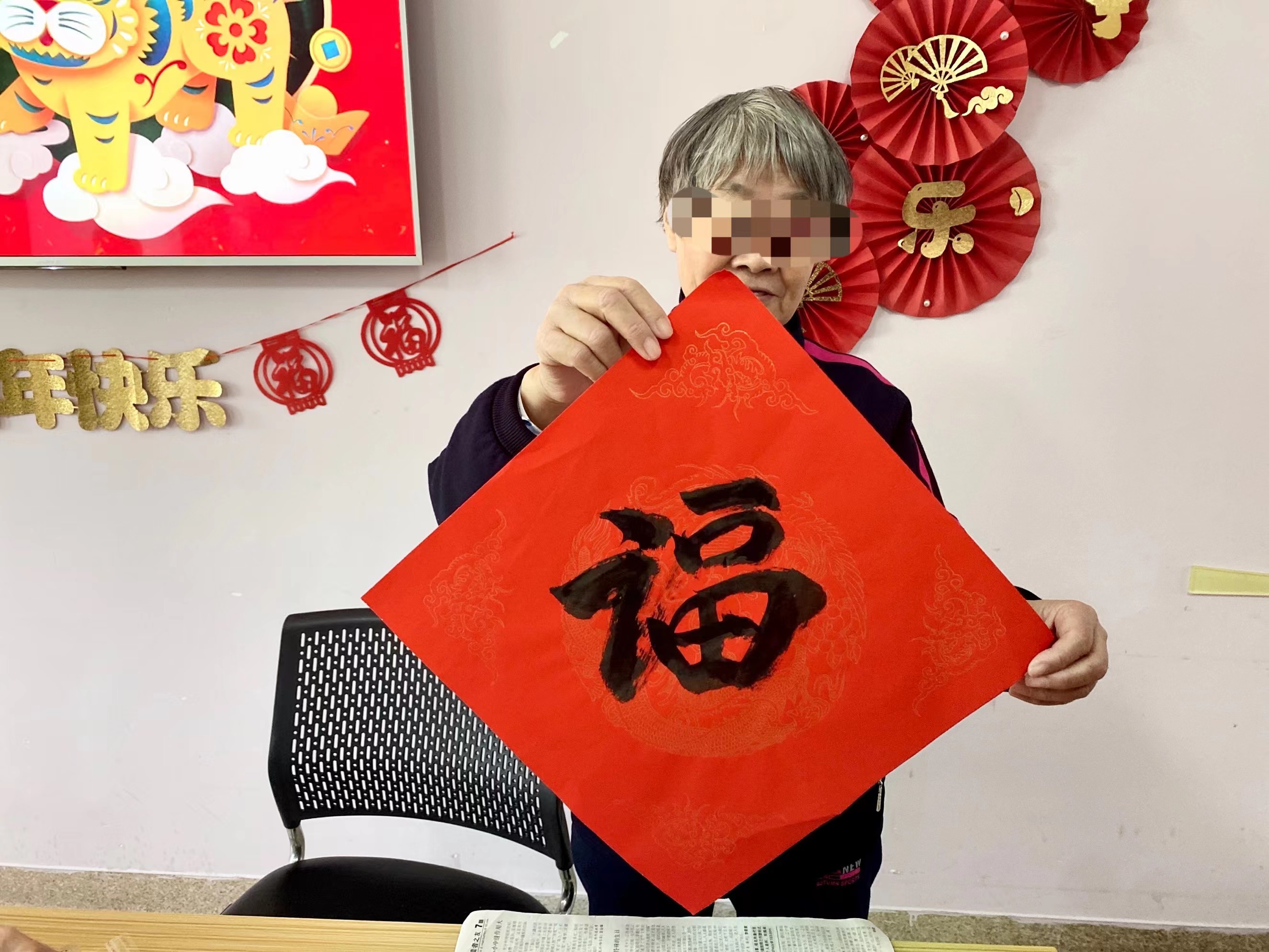? “福”字指福氣、福運(yùn),寄托了人們對(duì)幸福生活的向往,對(duì)美好未來(lái)的祝愿。為了更充分地體現(xiàn)這種向往和祝愿,我們讓爺爺奶奶自己動(dòng)手參與到寫(xiě)“?!弊只顒?dòng)中,帶著自己美好的心意,寫(xiě)下滿滿的祝福,在喜氣連連的虎年里,能帶給大家福運(yùn)。